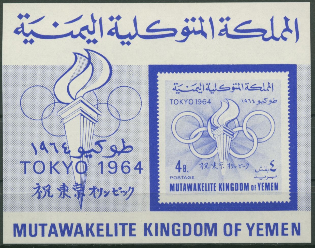 Jemen (Königreich) 1964 Olympiade Tokio Fackel Ringe Block 9 postfrisch (C30448)