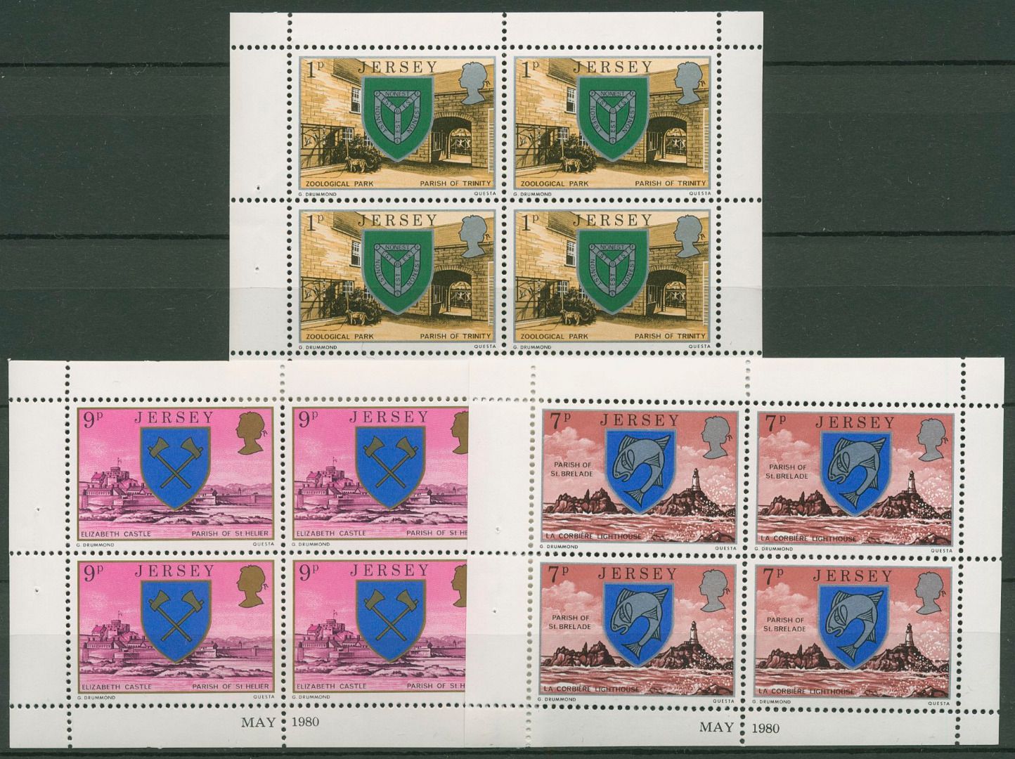 Jersey 1980 Wappen Heftchenblatt H-Blatt 3, 0-21, 0-24 postfrisch (C63052)
