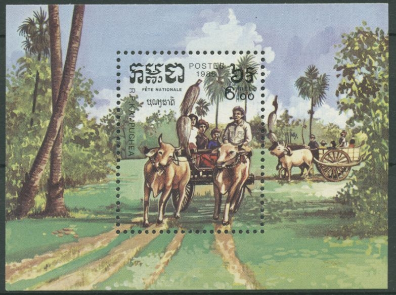 Kambodscha 1985 Nationalfeiertag, Ochsenkarren Block 141postfrisch (C10955)