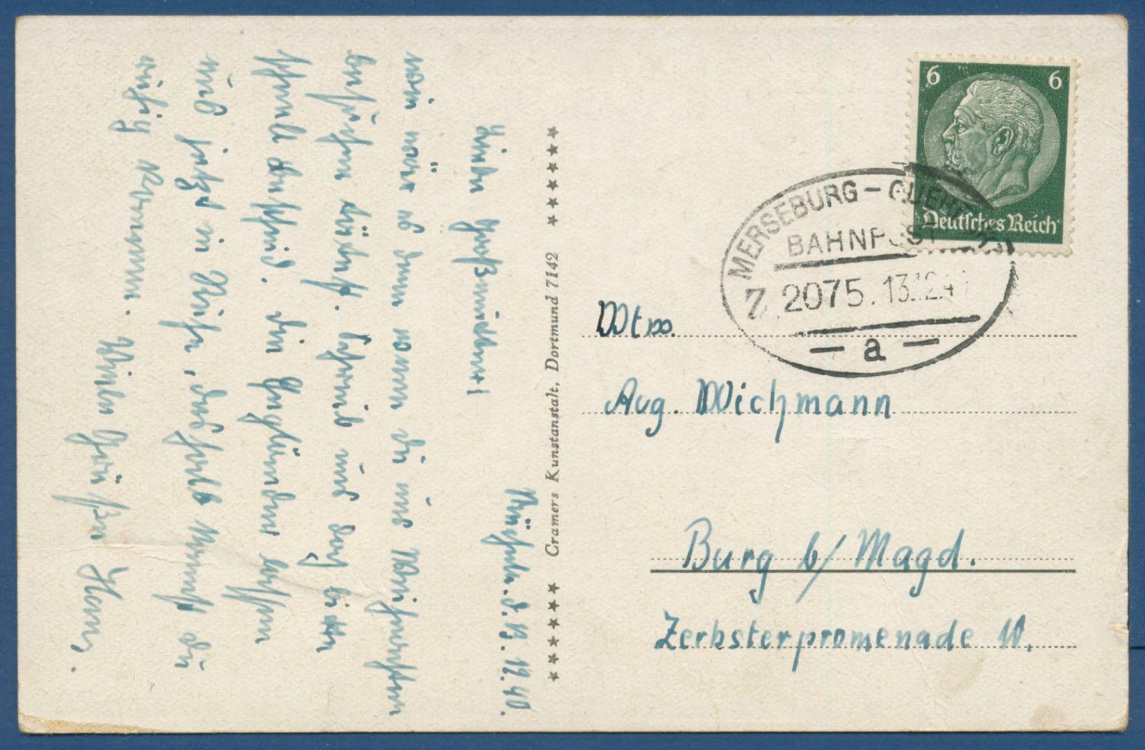 Kohlegrube Elise II bei Mücheln, Siedlung, gelaufen 1940 mit Bahnpost Merseburg - Querfurt (AK96)