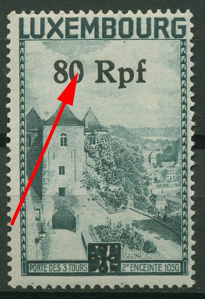 Plattenfehler 31 PF I: Kerbe rechts in der 0 der Wertangabe 80