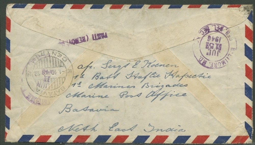 Niederl. Indien 1946 Marine Postkantor auf Luftpost- Retourbrief