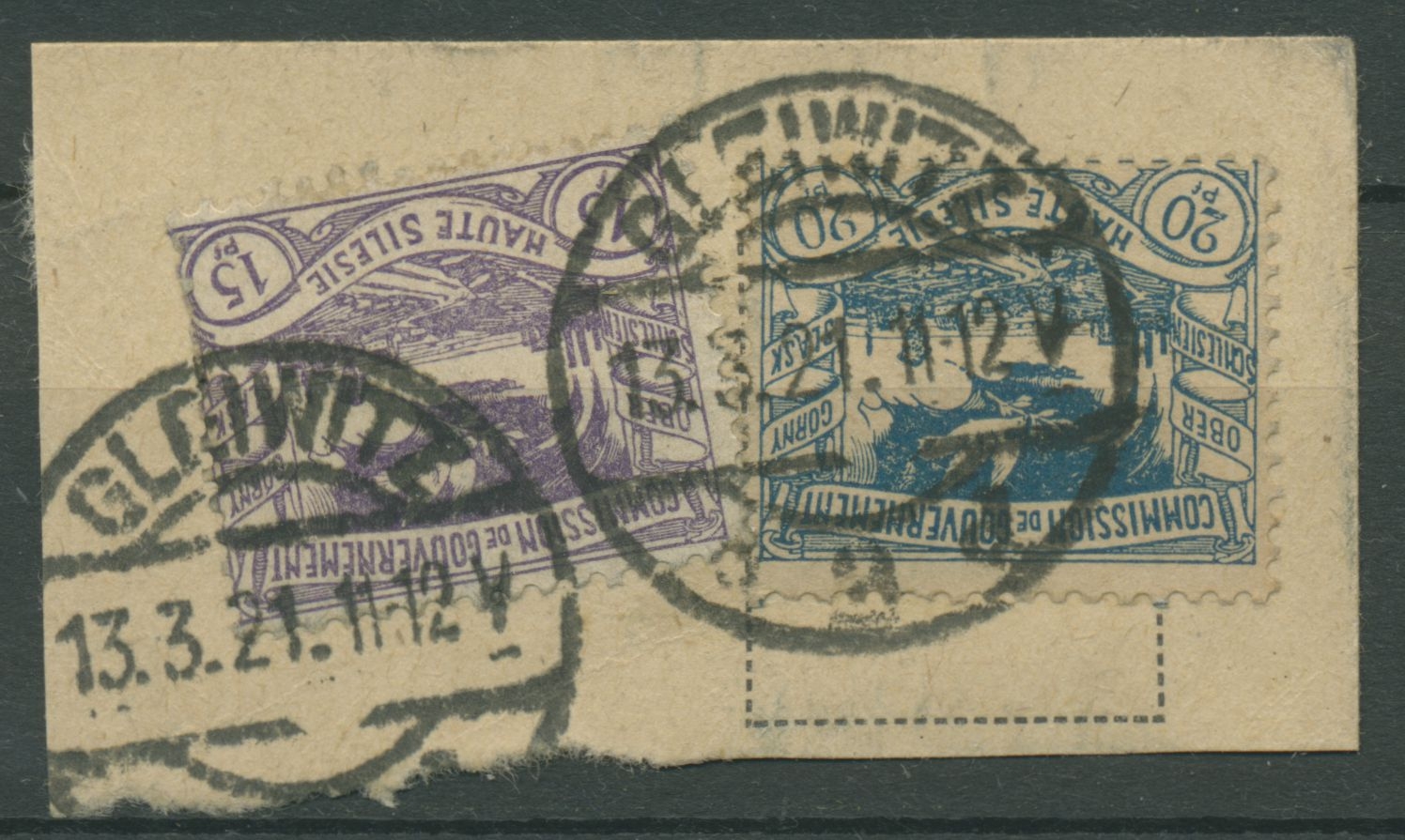 Oberschlesien GLEIWITZ 2 d 17, 18 auf Briefstück (OS416)