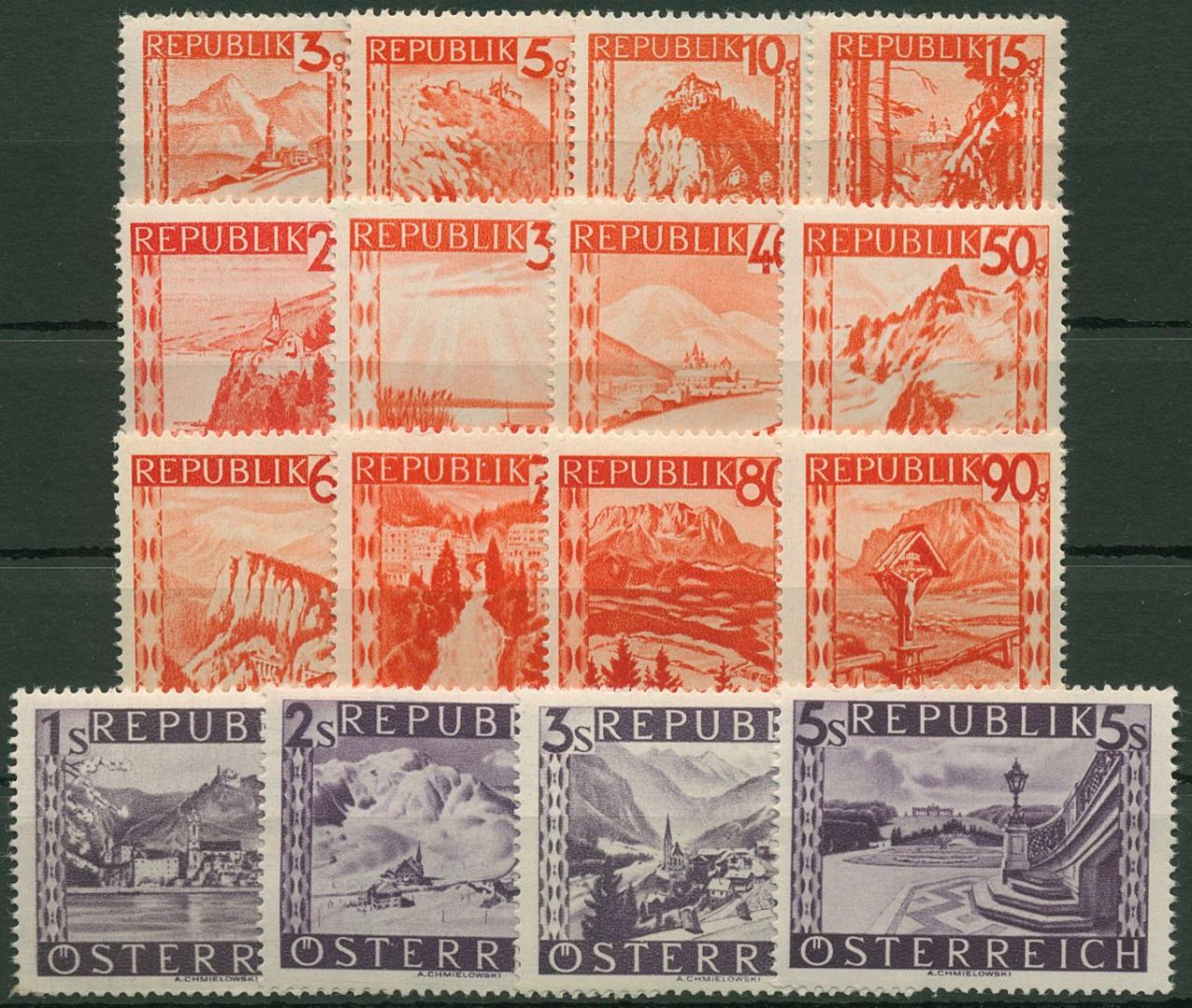 Österreich 1947 Freimarken Landschaften geänderte Farben 838/53 postfrisch