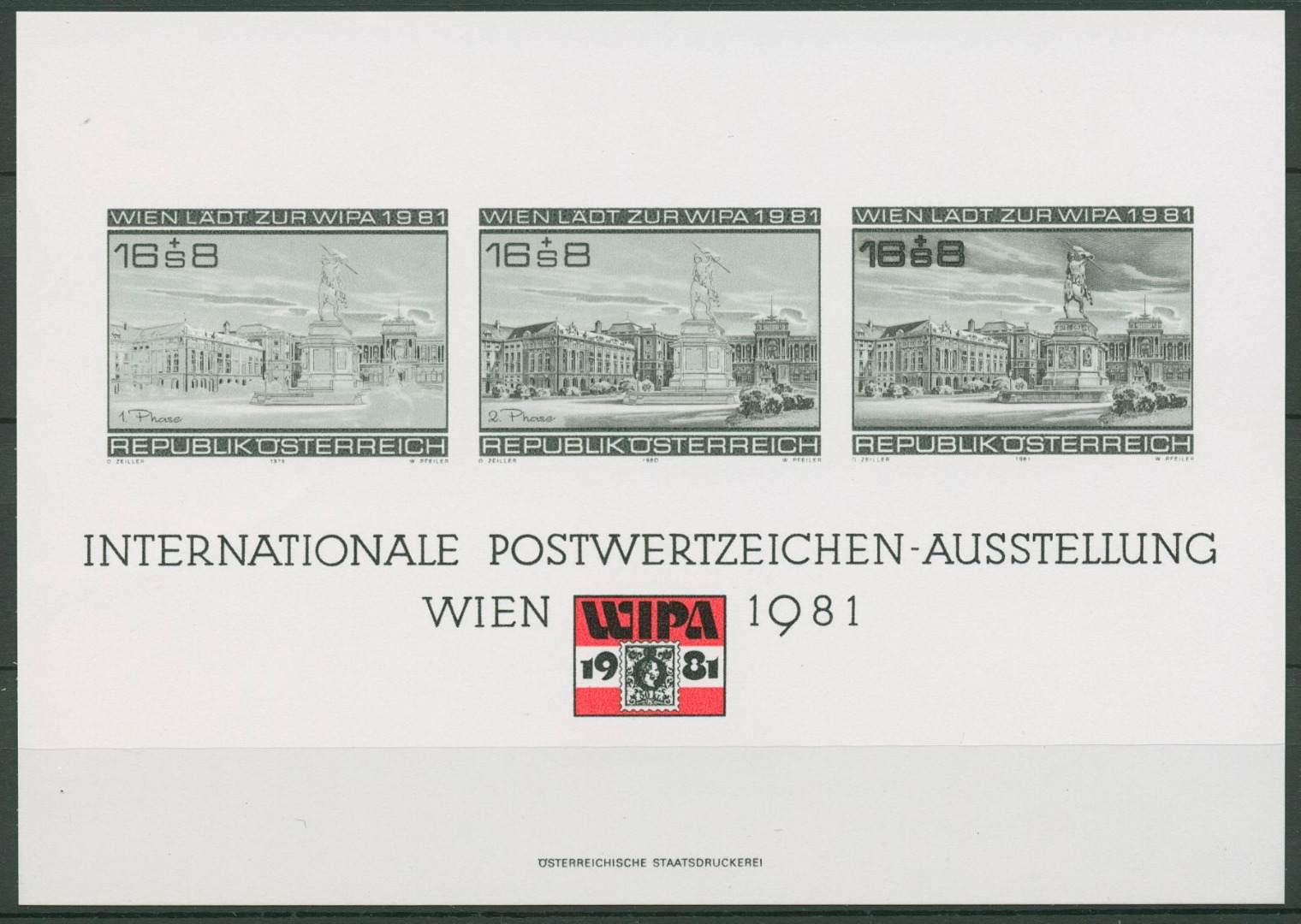 Österreich 1980 WIPA Heldenplatz Denkmal Schwarzdruck Gedenkblatt 7 (C96184)