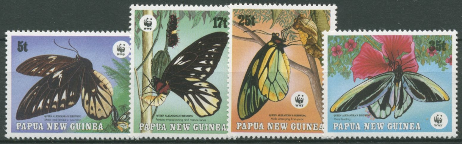 Papua Neuguinea 1988 Weltweiter Naturschutz: Königin-Alexandra-Vogelfalter 574/77 postfrisch, Schmetterlinge