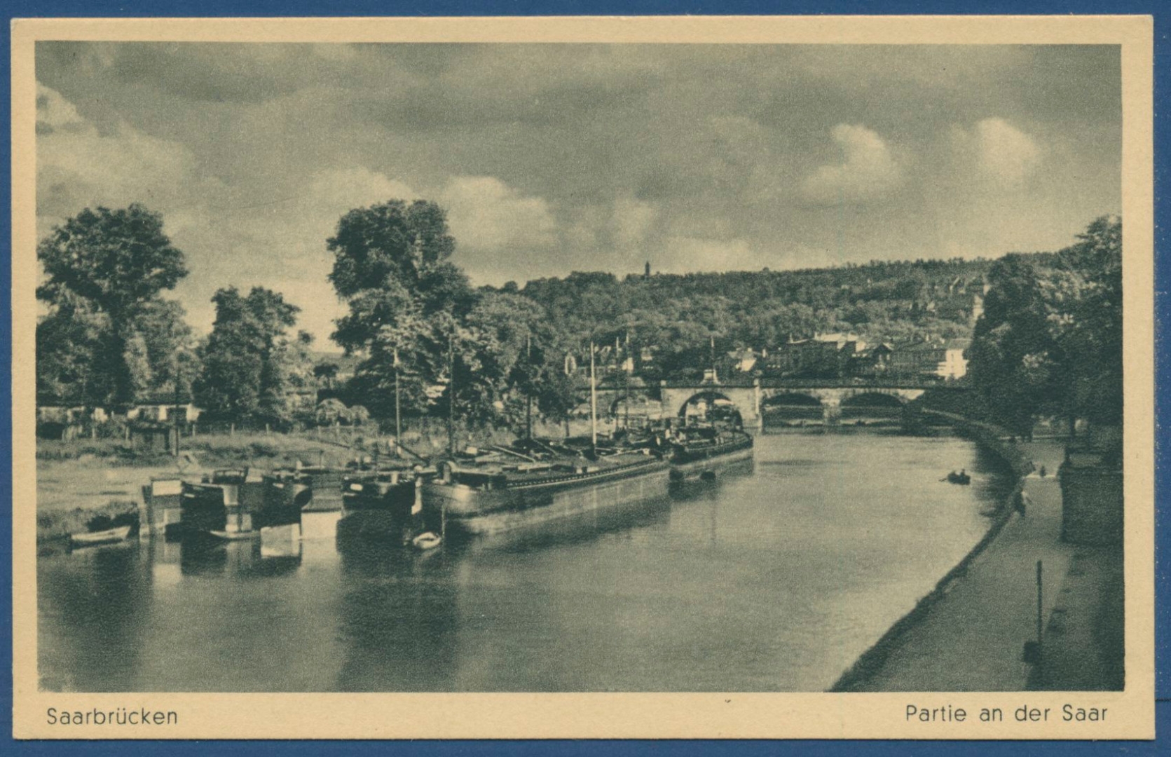 Saarbrücken Partie an der Saar Schiffe, ungebraucht (AK426)