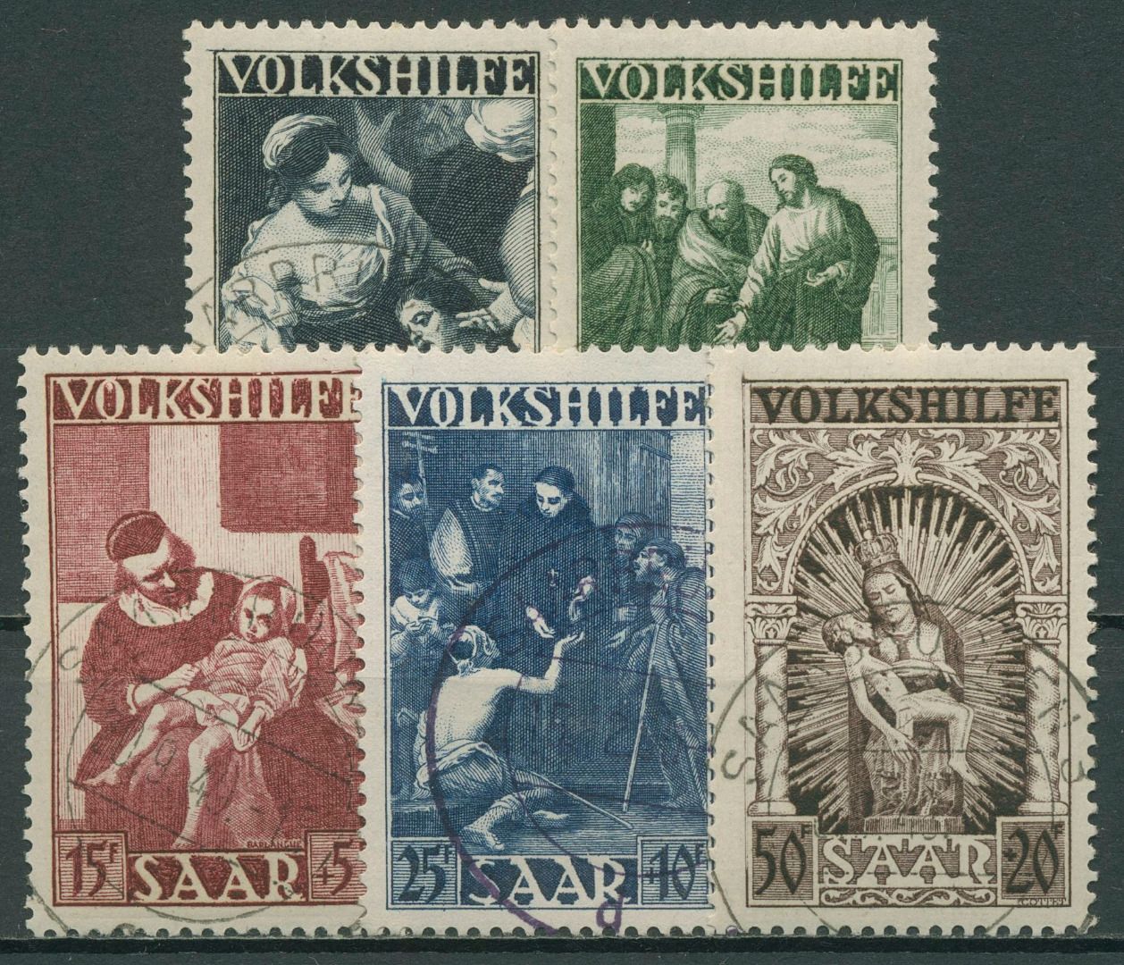 Saarland 1949 Volkshilfe: Gemälde 267/71 gestempelt, (alle außer 270 geprüft)