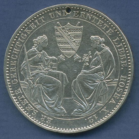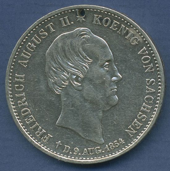 Sachsen Taler 1854, auf den Tod Friedrich Augusts, fast vz, gelocht (m6885)