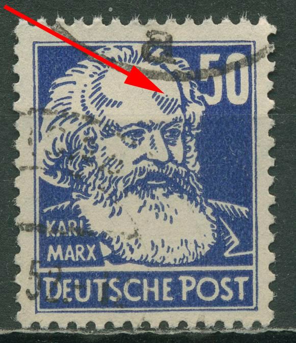 Plattenfehler 224 f 40a: Punkt über der 3. und 4. rechten Stirnlinienschraffur