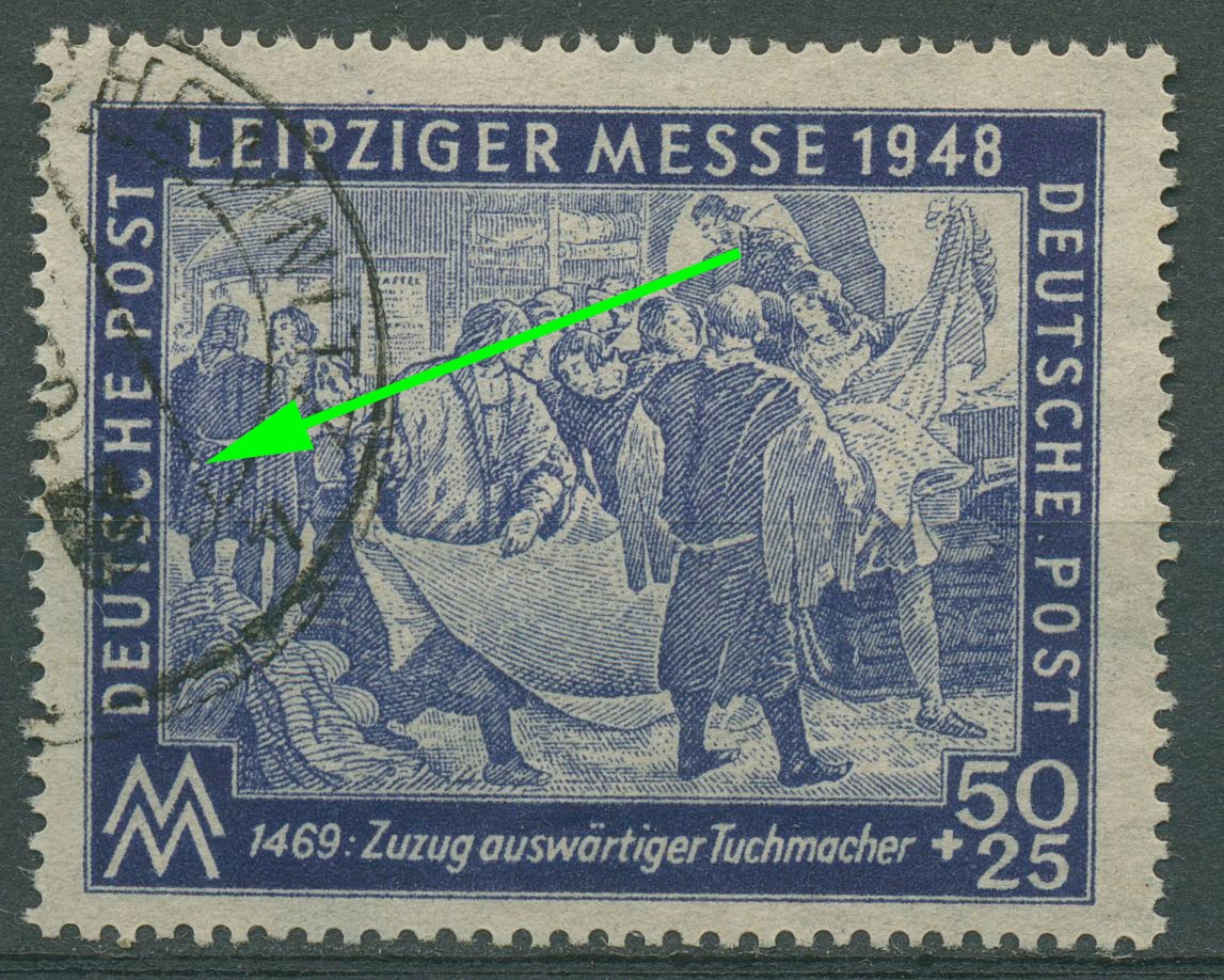 SBZ Allgemeine Ausgabe 1948 Leipziger Messe m. Plattenfehler 199 a IV: linker Mann mit Loch im Gewand, gestempelt
