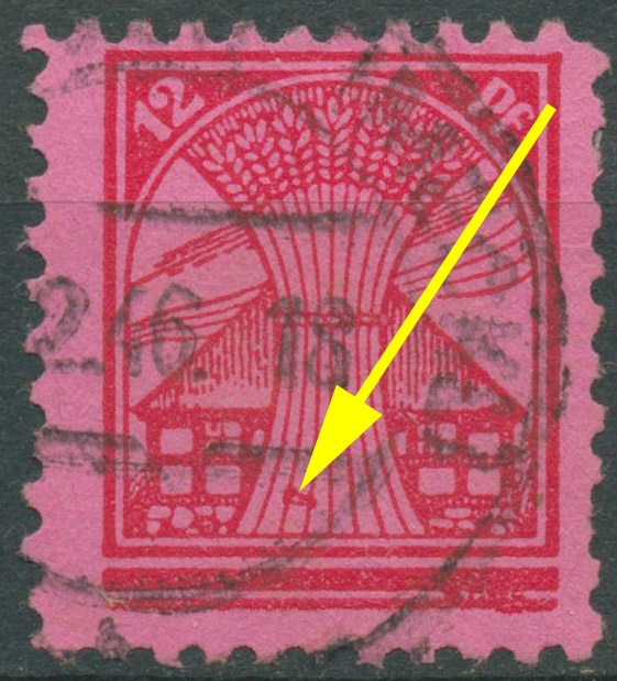 SBZ Mecklenburg-Vorpommern Freimarke mit Plattenfehler 19 y II PF XVI: Farbstrich und Verdickung unten zwischen 3. und 4. Halmlinie, gestempelt, y-Papier !!!
