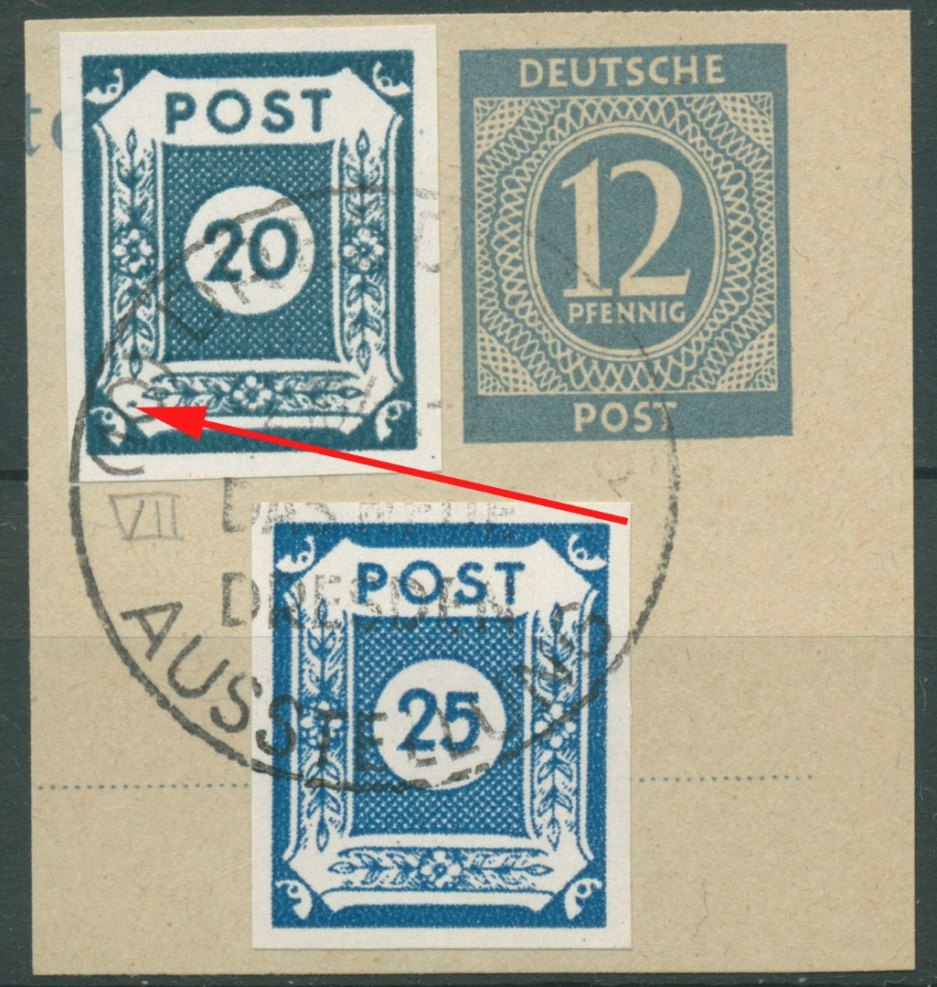 SBZ Ost-Sachsen 1945 Ziffernserie mit Plattenfehler 48 A a VII auf Briefstück