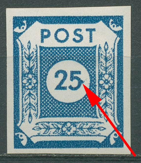 Plattenfehler 49 A II: 5 der Wertangabe 25 mit Buckel