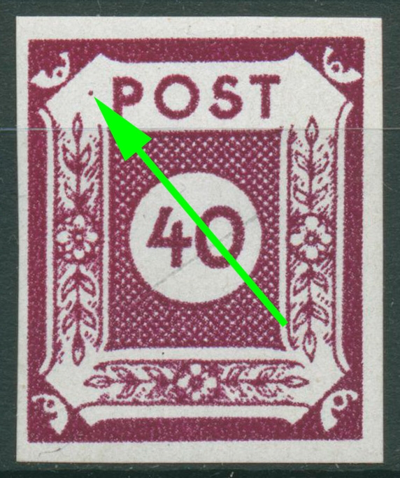 SBZ Ost-Sachsen 1945 Ziffernserie mit Plattenfehler 50 A II: Farbfleck links neben P von POST, postfrisch