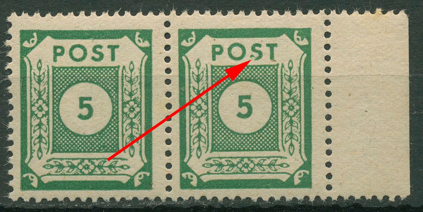 Plattenfehler 57 a III: S in POST beschädigt, Paar mit Vergleichsstück