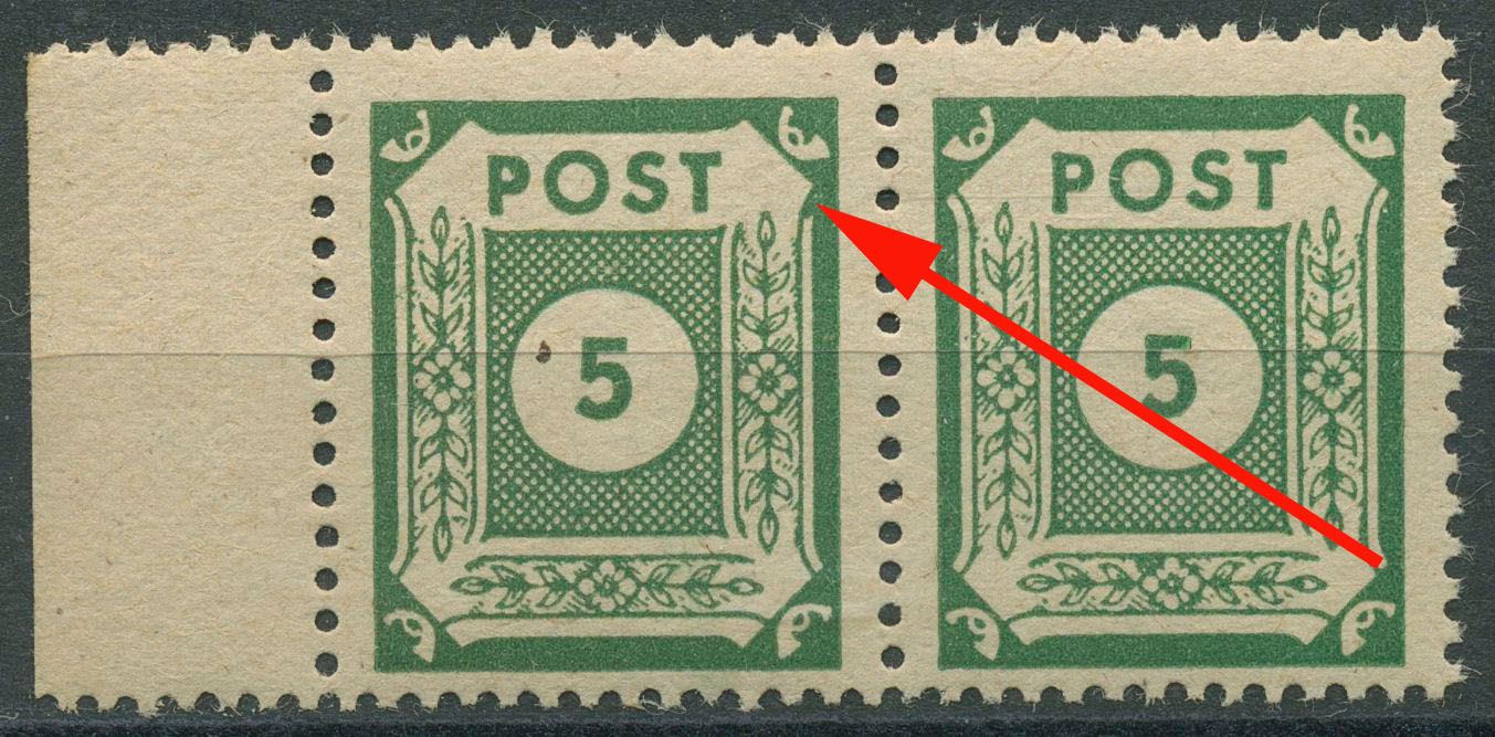 SBZ Ost-Sachsen 1945 Ziffernserie mit Plattenfehler 57 a IV: Farbfleck ganz oben in der rechten weißen Einfassungslinie, Paar mit Vergleichsstück, postfrisch