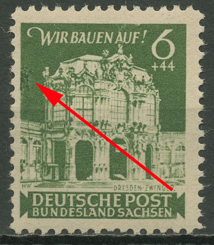 Plattenfehler 64 aA III: Schattierungen (Regen) links neben Zwinger