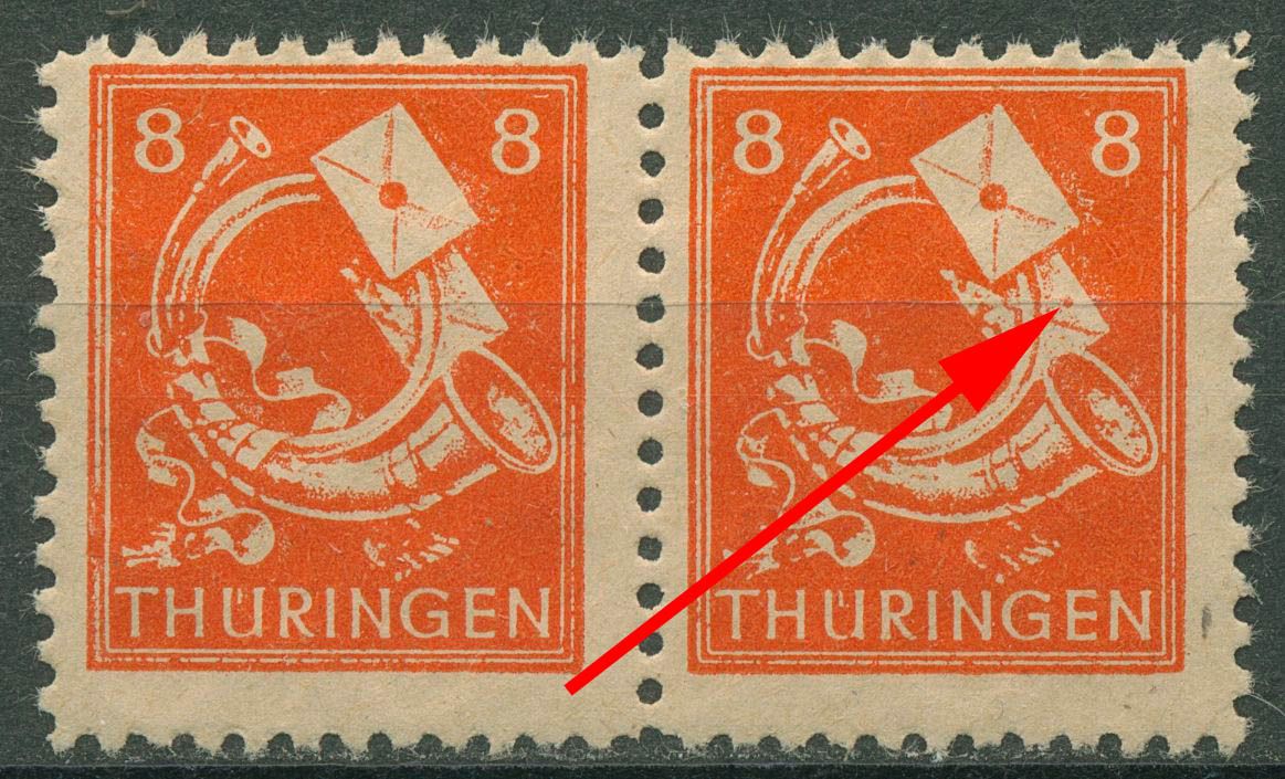 SBZ Thüringen Freimarke mit Plattenfehler 96 AY y VII: farbiger Punkt im unteren Brief, Paar mit Vergleichsstück, postfrisch