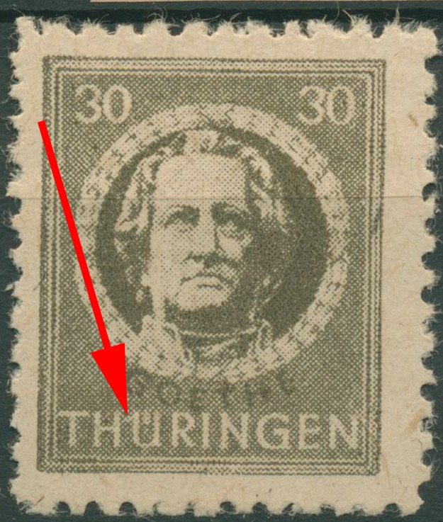 SBZ Thüringen Freimarke mit Plattenfehler 99 AY az1 IV: Ü in THÜRINGEN mit dünnem Aufstrich, postfrisch
