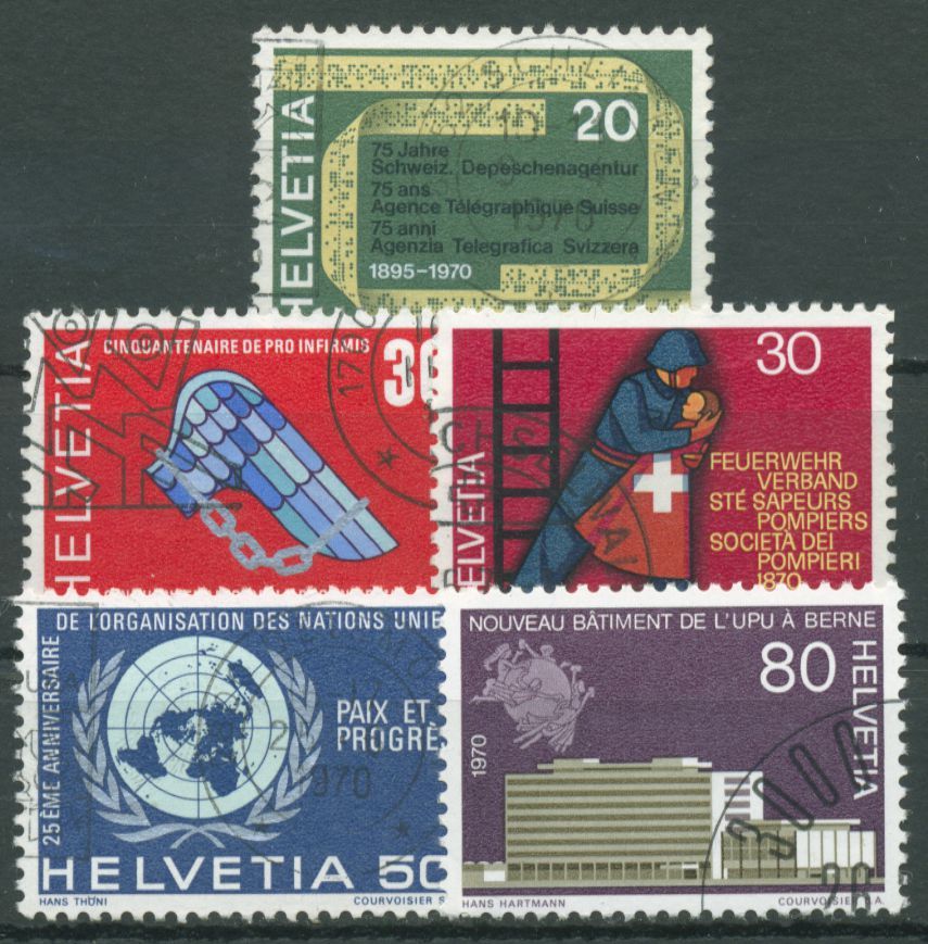 Schweiz 1970 Ereignisse Feuerwehr Pro Infirmis UNO UPU 918/22 gestempelt