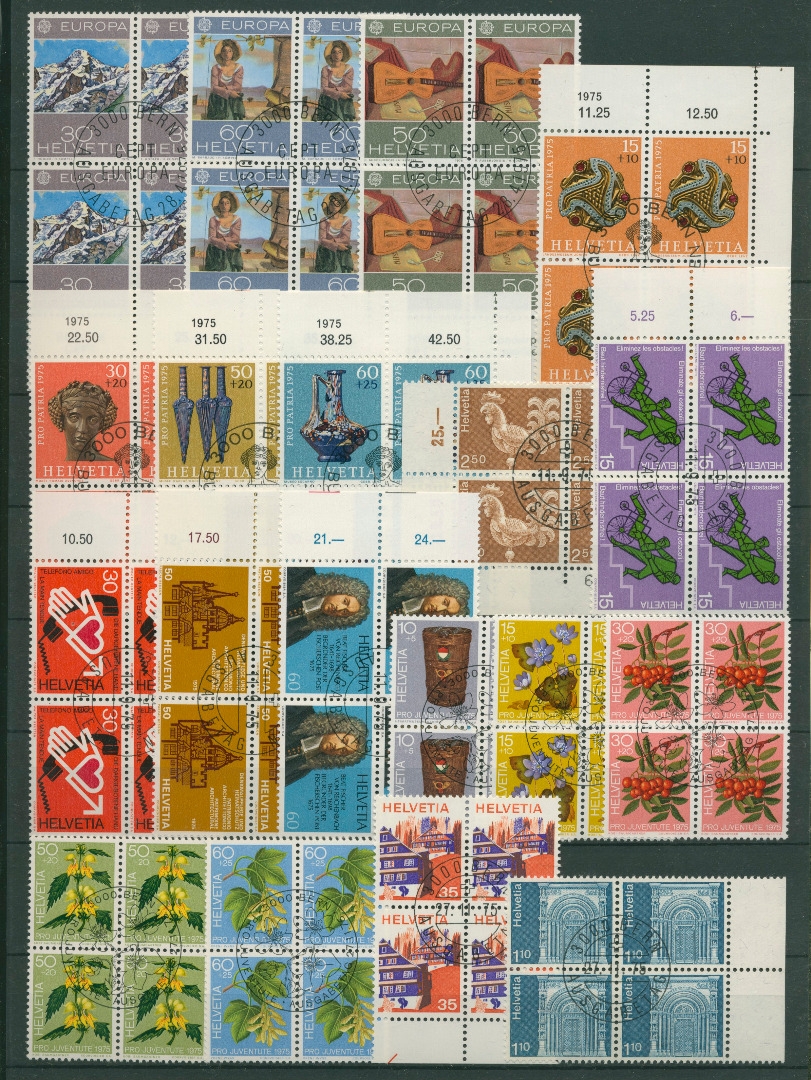 Schweiz 1975 Jahrgang komplett Viererblocks gestempelt