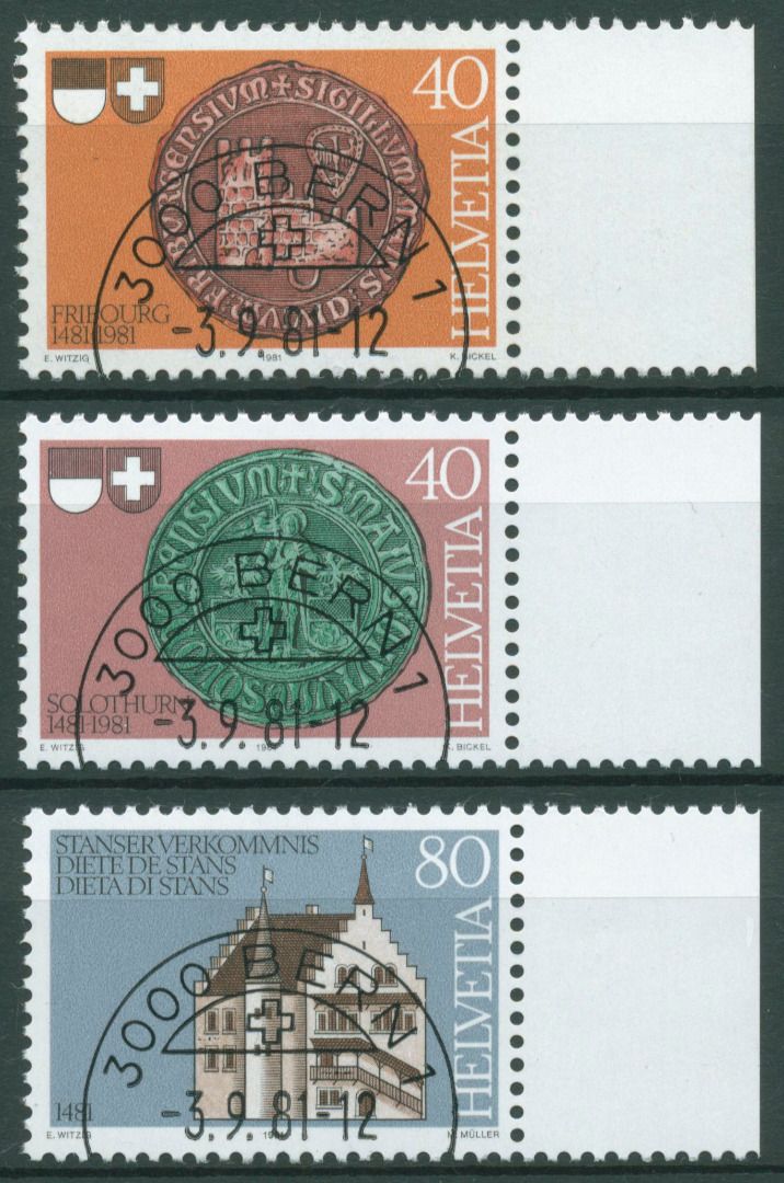 Schweiz 1981 Freiburg Solothurn Stanser Verkommnis Rathaus 1203/05 gestempelt