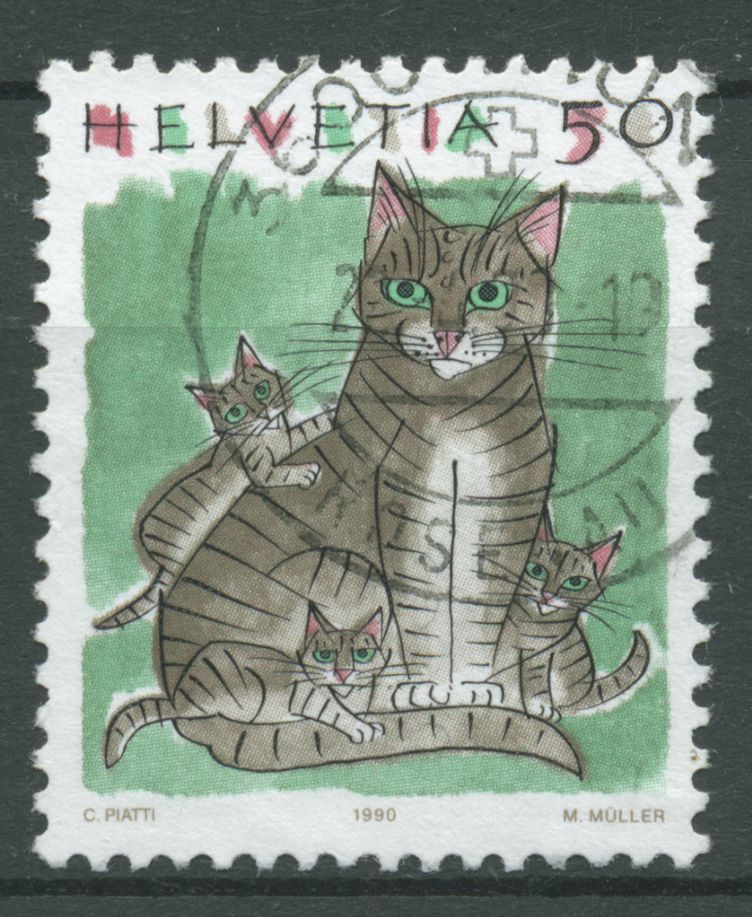 Schweiz 1990 Tiere Katzen Hauskatze 1414 gestempelt