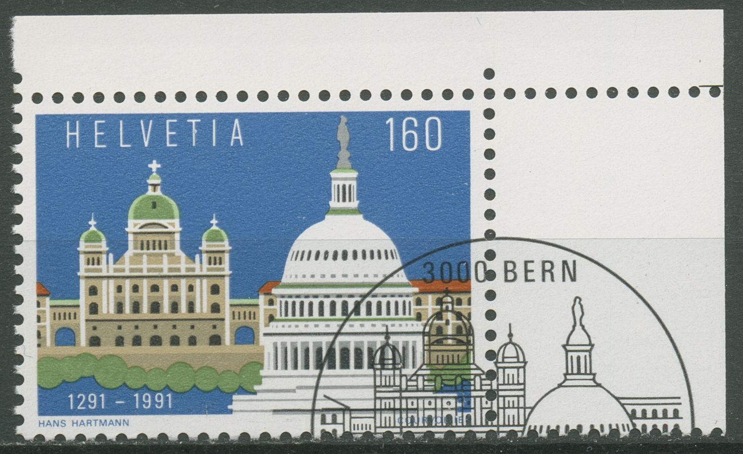 Schweiz 1991 Eidgenossenschaft Verbindungen zu USA Bauwerke 1442 Ecke gestempelt