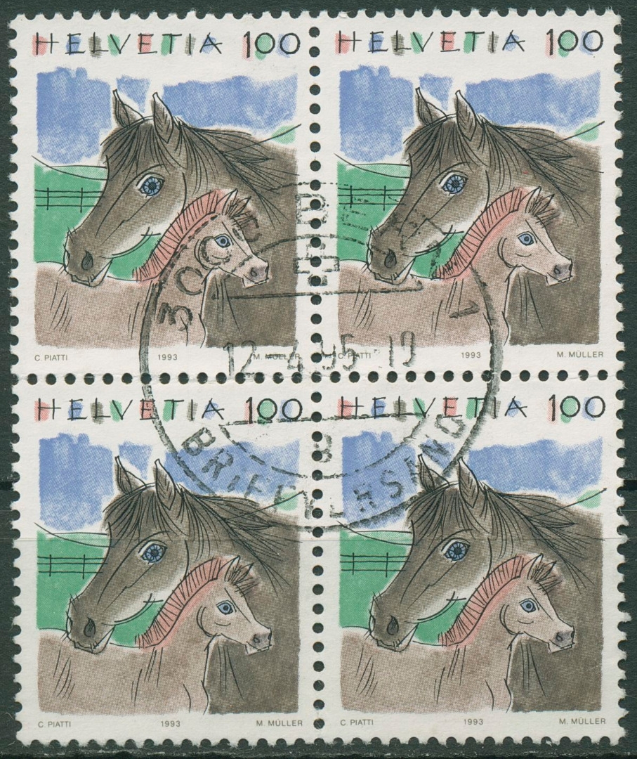 Schweiz 1993 Tiere Pferde 1491 4er-Block gestempelt