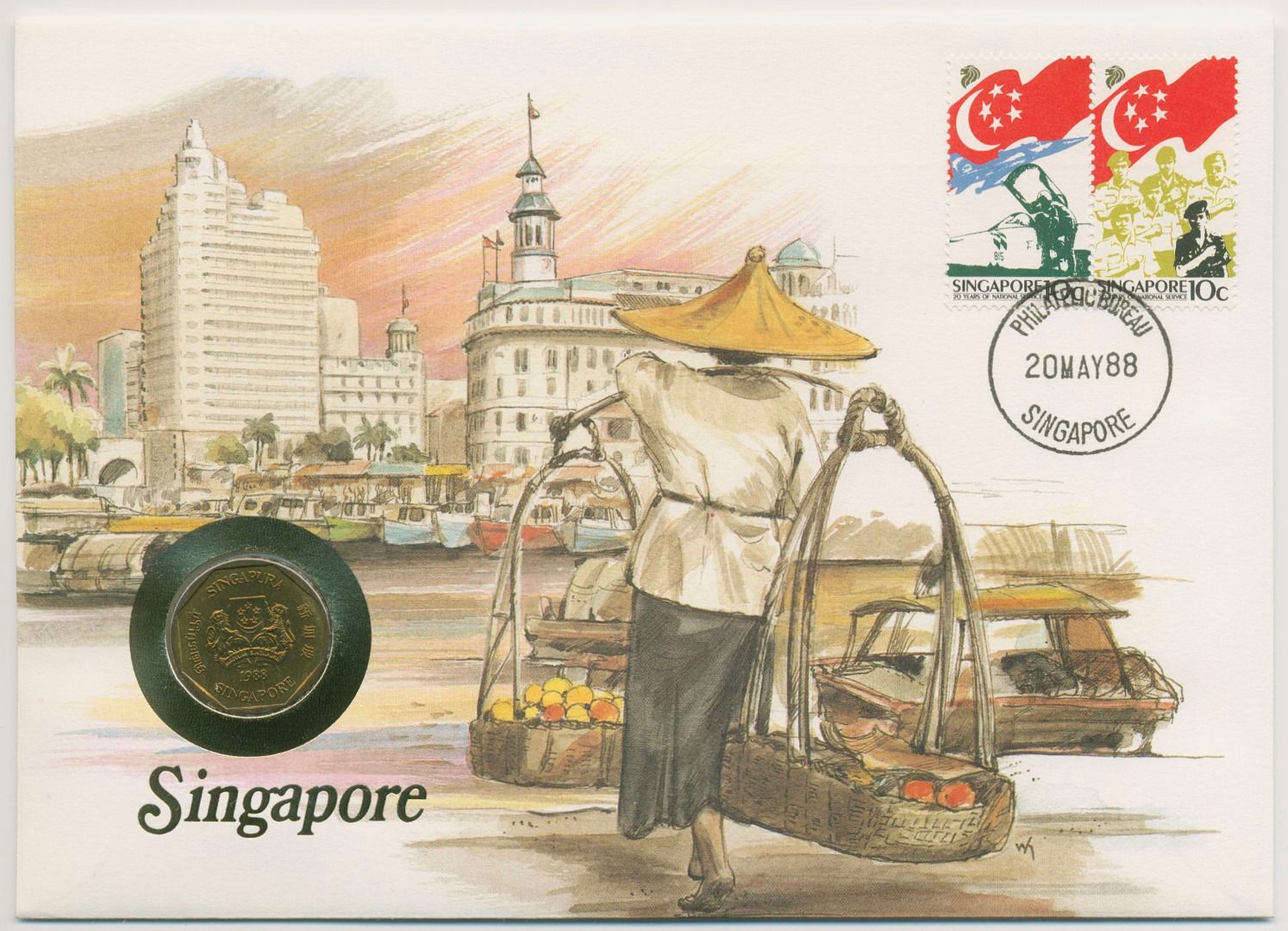 Singapur 1988 Markthändler Numisbrief 1 Dollar (N534)