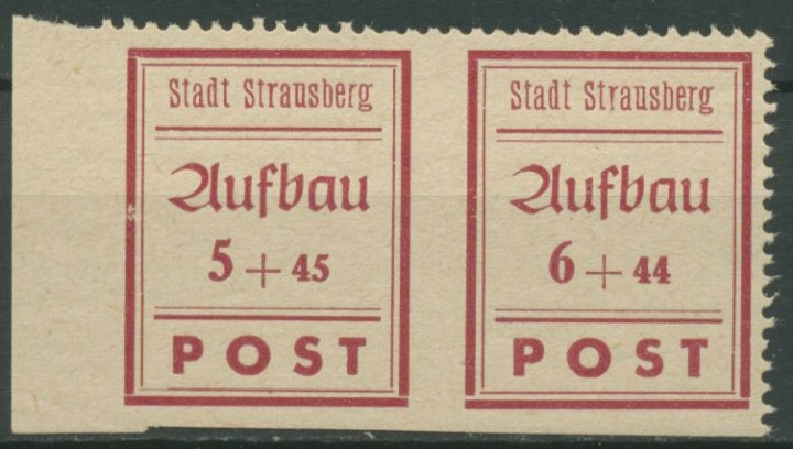 Strausberg 34/35 UMs waagerechtes Paar postfrisch Wiederaufbau, waagerechtes Paar Mitte ungezähnt, geschnitten