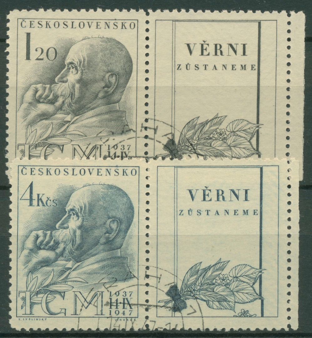 Tschechoslowakei 1947 Staatspräsident Th. Garrigue Masaryk 523/24 Zf gestempelt