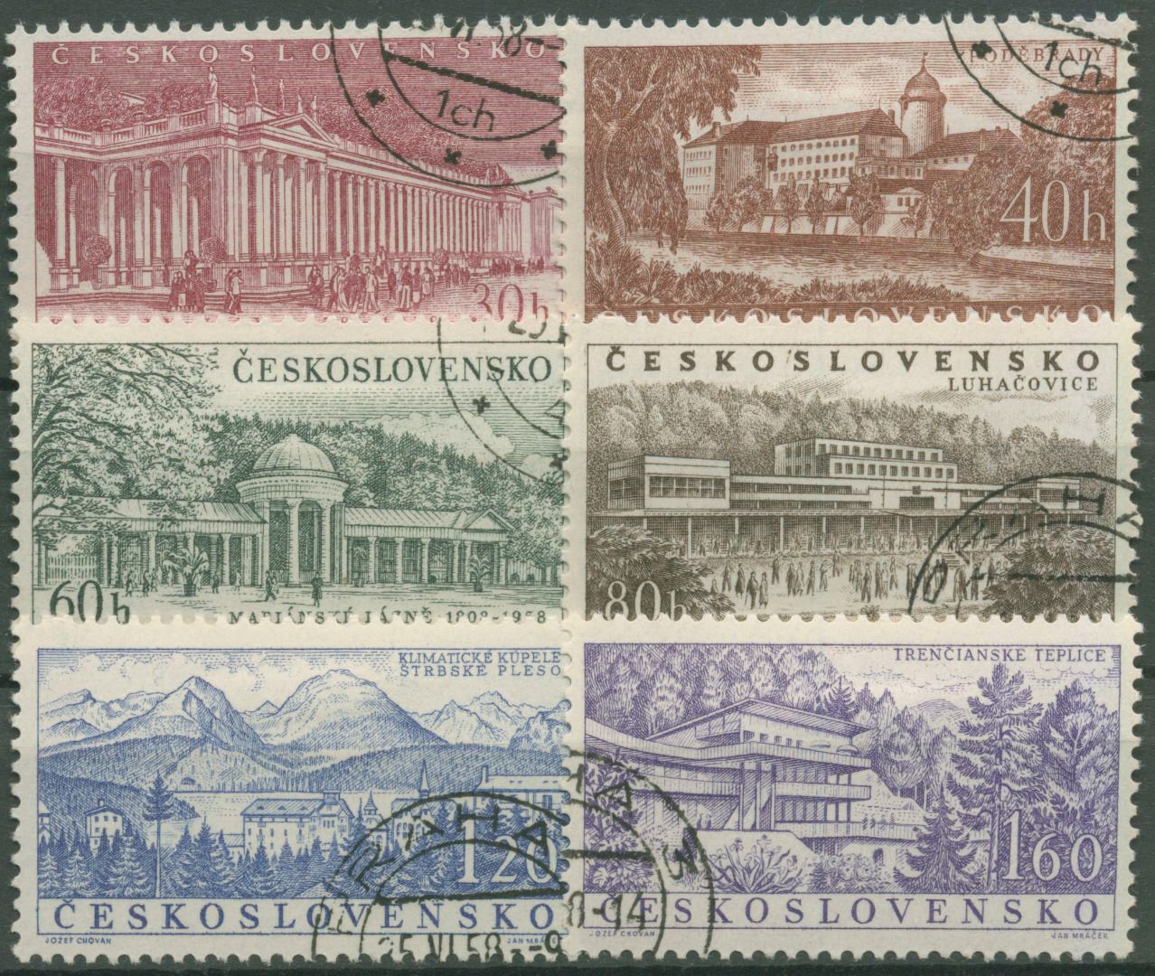 Tschechoslowakei 1958 Bauwerke Bäder Kurhäuser 1085/90 gestempelt
