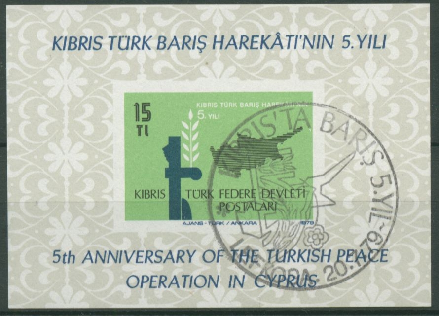 Türkisch-Zypern 1979 Türk. Intervention auf Zypern Block 1 gestempelt (C6661)
