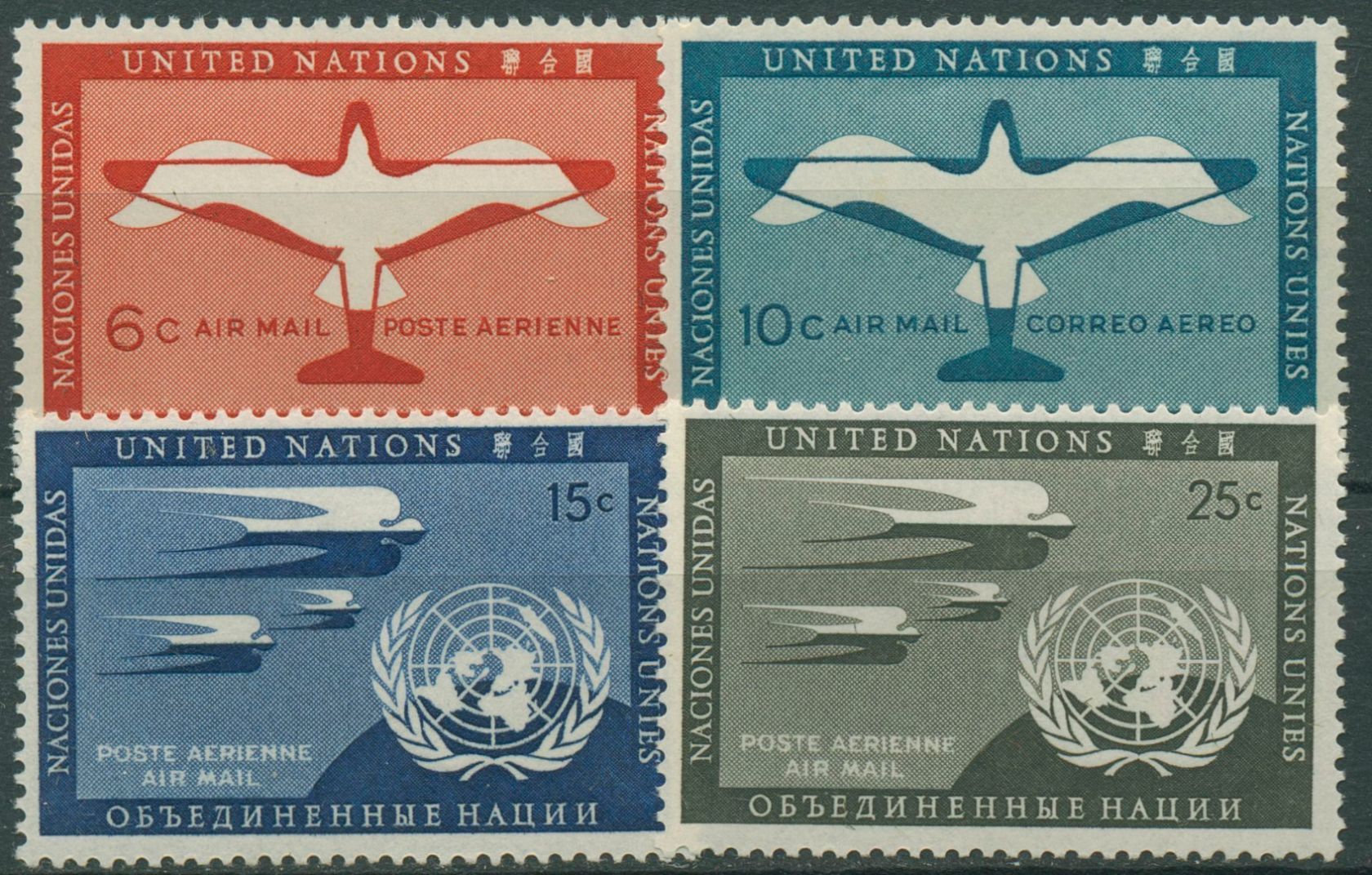 UNO New York 1951 Flugpost Möwe Flugzeug Schwalben 12/15 postfrisch