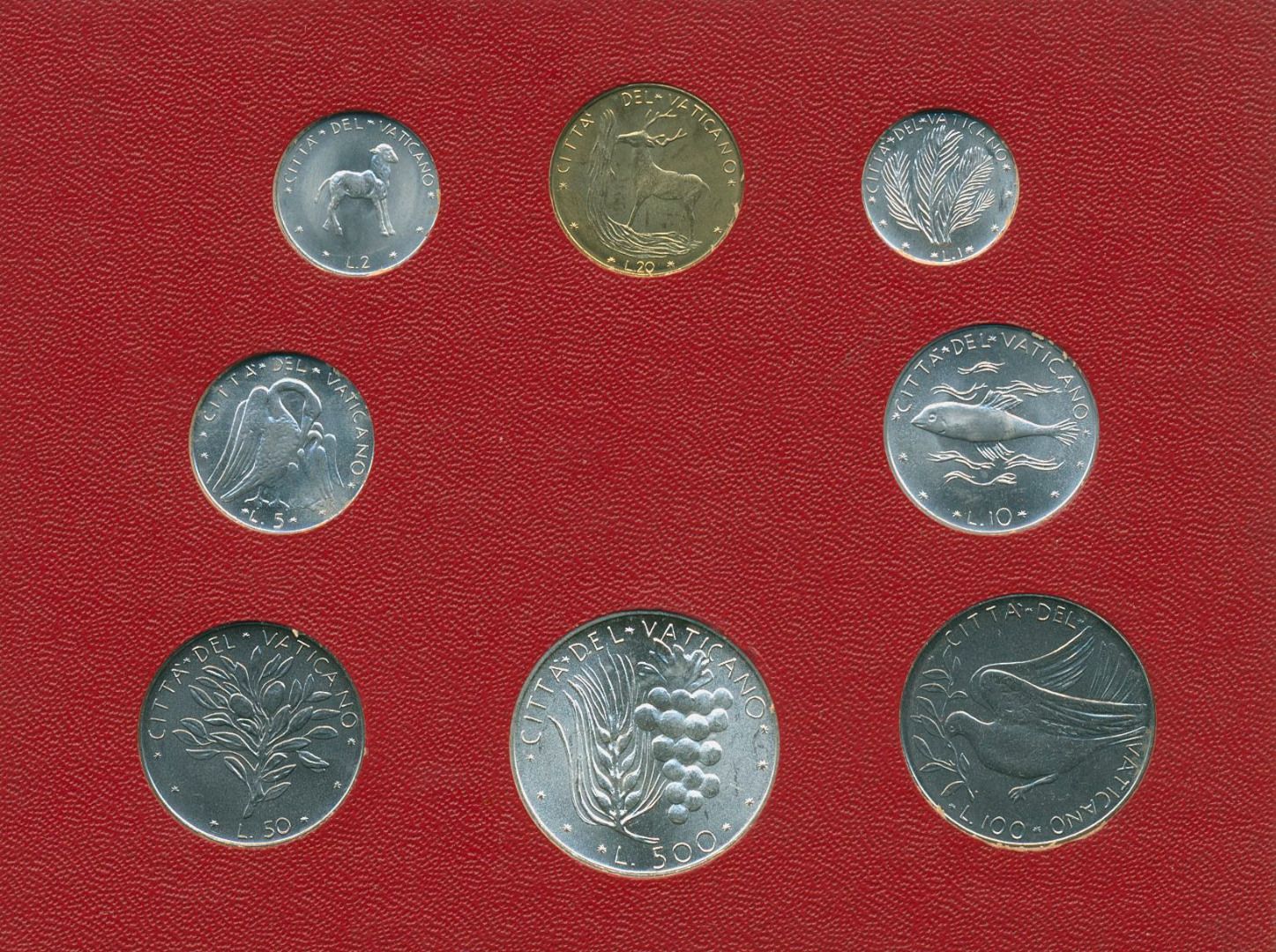 Vatikan 1970 Kursmünzen Papst Paul VI., im Blister, 1 - 500 Lire, st, (m5435)