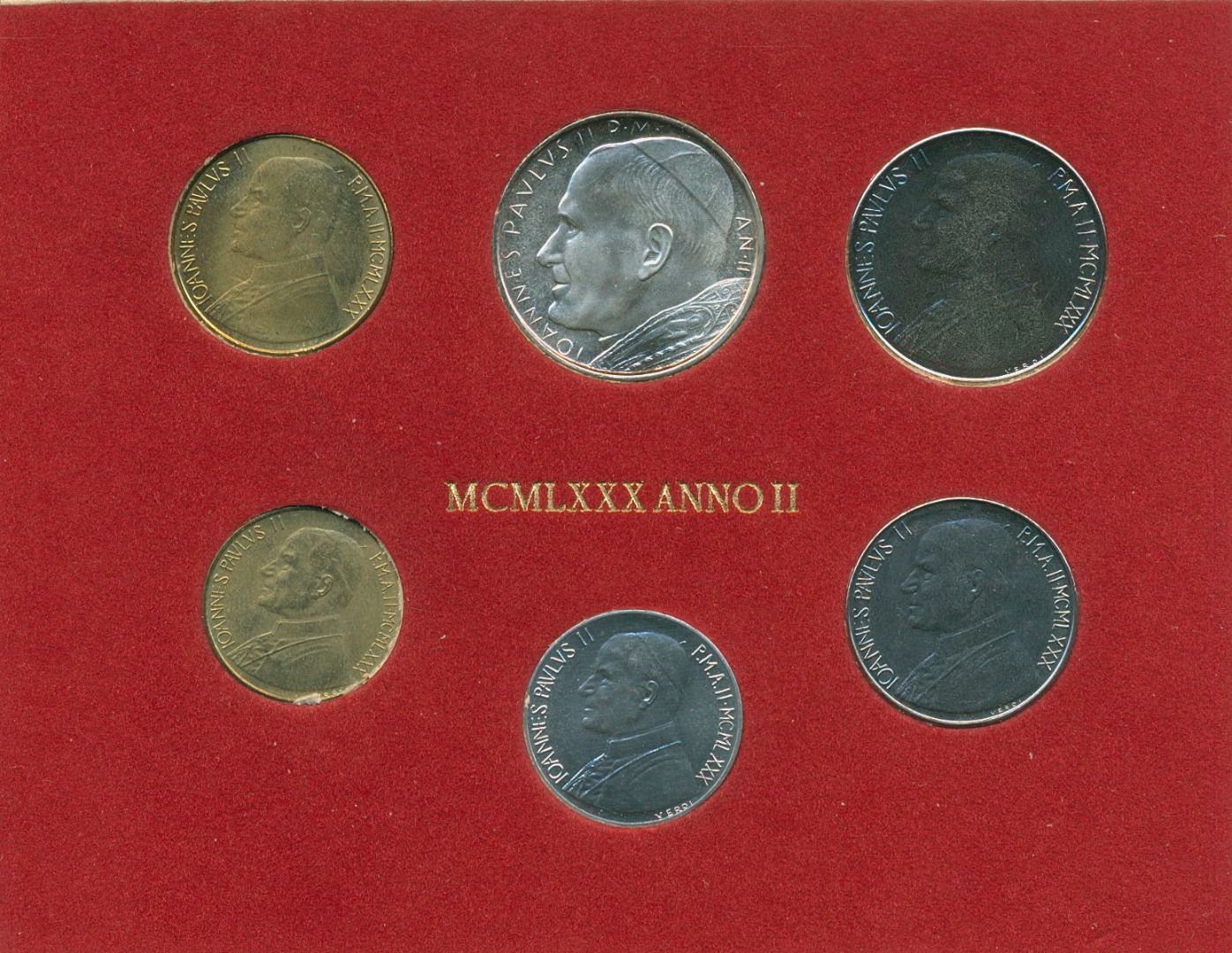 Vatikan 1980 Kursmünzen Papst Johannes Paul, Blister, 10 - 500 Lire, st, (m5419)