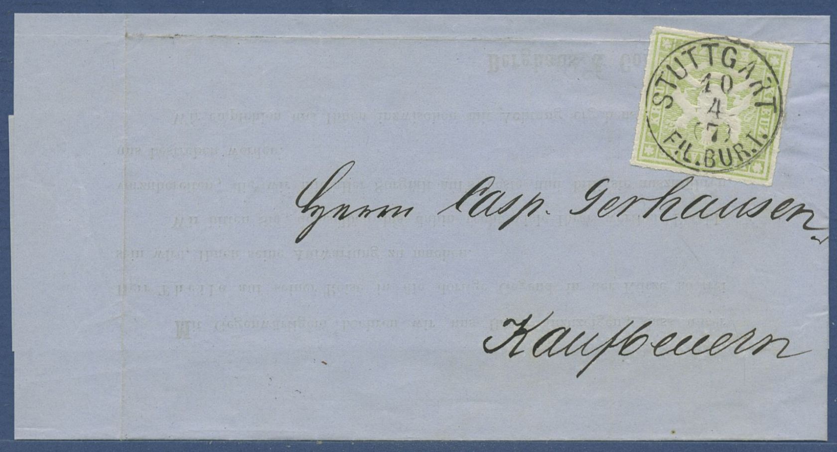 Württemberg Drucksache mit 1 Kreuzer 30 a, K 1 STUTTGART FIL. BUR. I. (X41517)