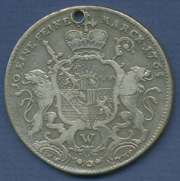 Würzburg-Bistum Taler 1765 Adam Friedrich von Seinsheim, ss gelocht (m6886)