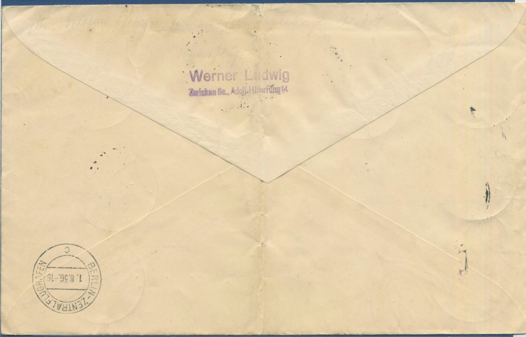 Zeppelin LZ 129 Olympiafahrt 1936 Brief mit Dt. Reich 609/16, gefaltet (SG40481)